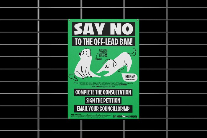 நகரசபை உத்தேசித்திருந்த நாய்களுக்கு எதிரான விதிமுறைகளுக்கு எதிராக பொதுமக்கள் மத்தியில் விழிப்புணர்வு ஏற்படுத்தி ஆதரவு திரட்டும் நோக்கத்துடன், கிழக்கு லண்டன் பகுதி நாய்கள் அமைப்பு, பல்வேறு சுவரொட்டிகளை வெளியிட்டிருந்தது. நாய்கள் தடைக்கு மறுப்பு சொல்வோம் எனும் செய்தியை முக்கியமாக கொண்டிருந்த இந்த சுவரொட்டி வாசகங்களில் பயன்படுத்தப்பட்ட இரண்டு எழுத்துரு வடிவங்களின் குணாதிசயங்கள் இந்த விழிப்புணர்வு பிரச்சாரத்திற்கு எப்படி பொருத்தமாக அமைந்தன என்பதை இந்த பதிவு விளக்குகிறது.